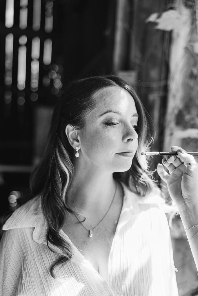 Getting ready photos include final hair and makeup touches, candid moments with your people, getting into your dress or suit, and portraits by natural light.